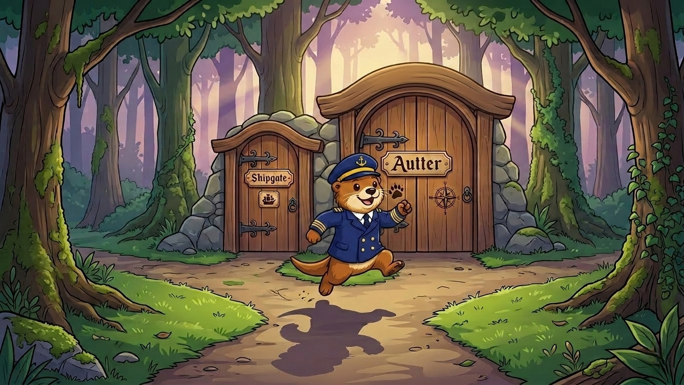 It started as a mascot sketch, something to fill the page. An otter standing at a harbour gate, arms crossed, not letting anything through without a reason. I named him Captain Patch, gave him a coat, and put him at the entrance looking like he’d seen some things and wasn’t impressed by any of them.